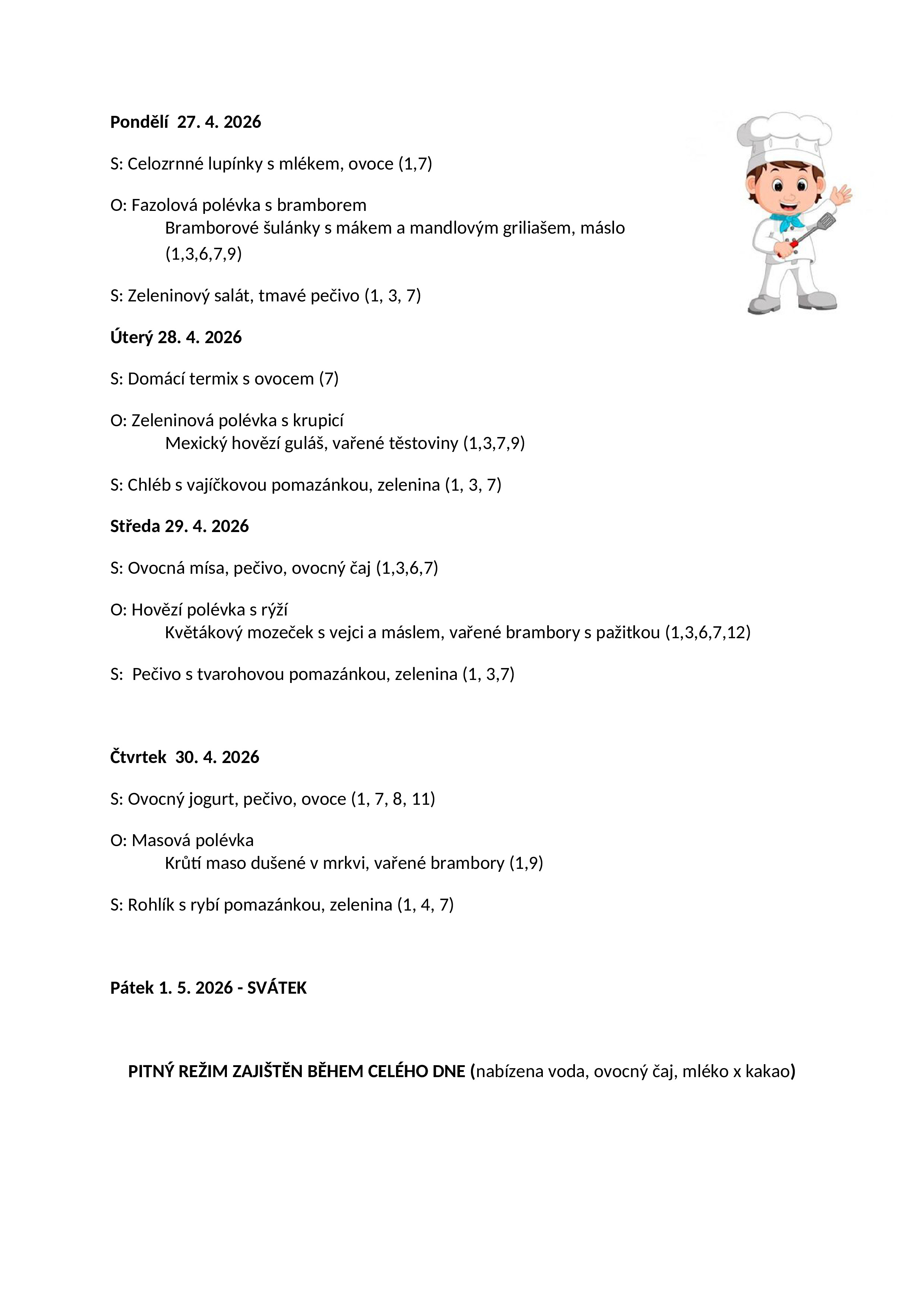 Jídelníček 27.4.26 - 1.5.26